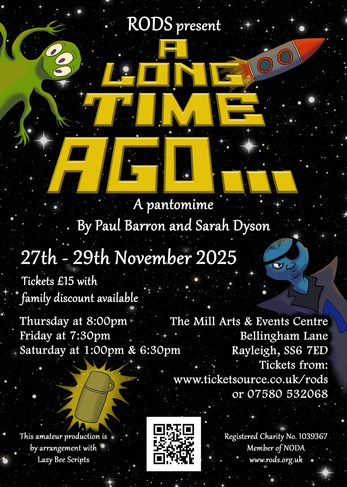 To see, come along and join RODS as we bring this sparkling pantomime to the heart of Rayleigh – you’ll be sure to enjoy this adventure that’s out of this world!!